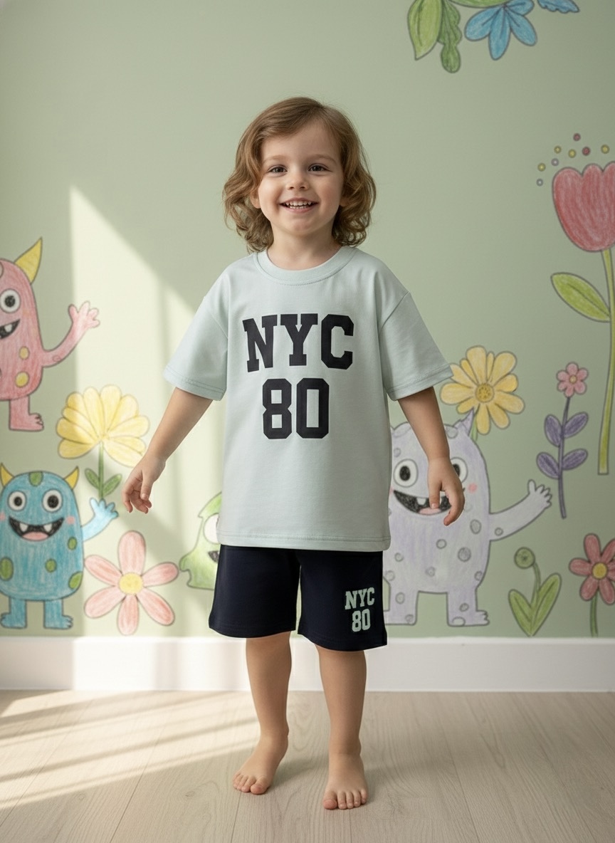 Lacivert - Açık Mavi Erkek Yazlık Takım